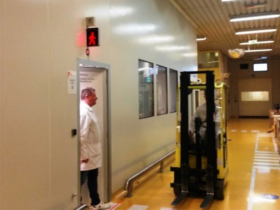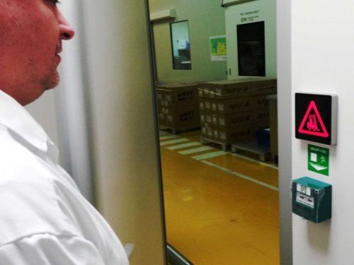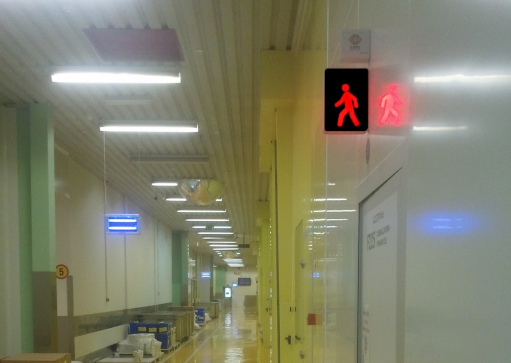 We have developed a system for outdoor and indoor premises in factories where there is a risk of collision. The system works on the basis of vehicle and pedestrian detectors. It actively produces signals for the increased attention of participants to further avoid the risk of collision at critical points.