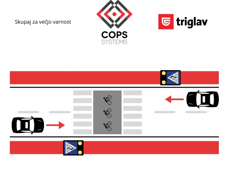 Občine imate možnost zagotoviti večjo varnost kolesarjev prav s sistemom COPS@zebra LITE, ki ga sestavljata dva modula, namenjena opozarjanju voznikov na približevanje prehodu za kolesarje. Dodatni dolgoročni učinek sistema COPS@zebra LITE je tudi umirjanje prometa.